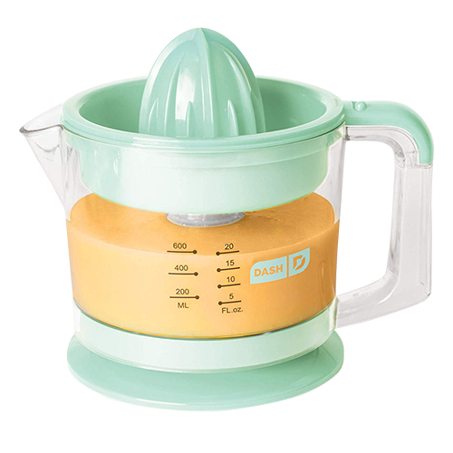 It comes with a lid so you can store squeezed juice in the refrigerator. Although the manufacturer claims the Dash can be machine washed, it’s made of plastic, and high-heat drying in a dishwasher will most likely damage it.