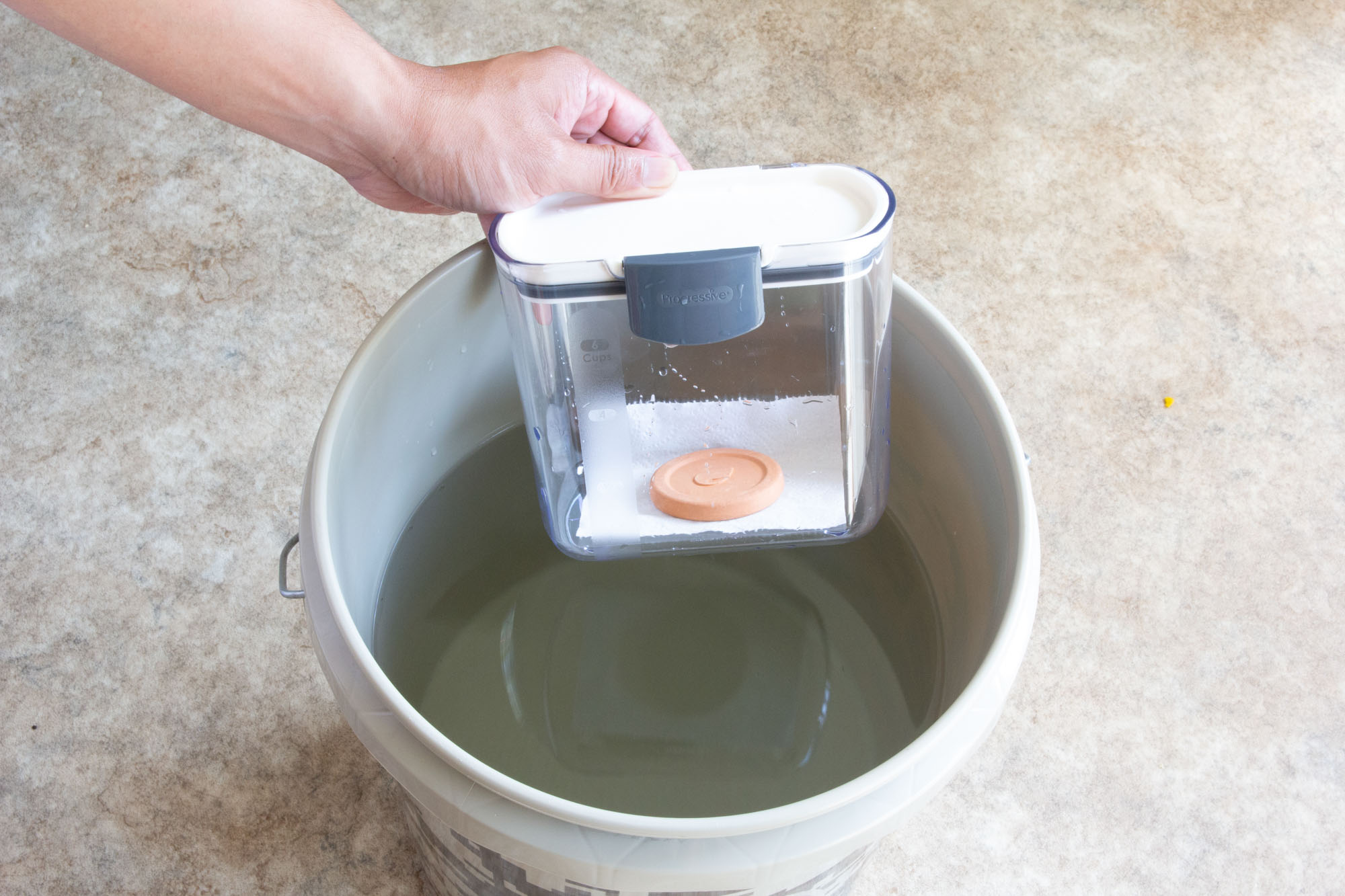 To test whether a container was airtight, we sealed a piece of toilet tissue inside each container, locked its lid and then plunged it into two gallons of water. We held the container under water and revolved it several times. When we removed the container from the water and unsealed the lid, if the tissue paper was wet, the container wasn’t airtight. Only three of the seven storage containers we tested were 100 percent airtight.