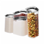 - The three larger containers are great for storing dry pantry goods, such as flour, sugar and rice.