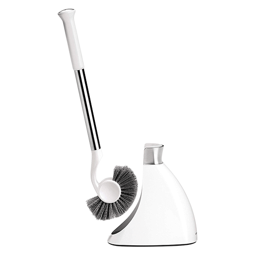 The OXO – Good Grips Hideaway Compact Toilet Brush is a slightly more affordable alternative to the SimpleHuman brush. The light-weight design doesn’t feel as luxurious, but it’s just as effective. The fact that the OXO is smaller also made it easier to hide out of sight. Its bristles are dense and long enough to reach under the rim, and its small head fits entirely into the bottom of the toilet drain.
